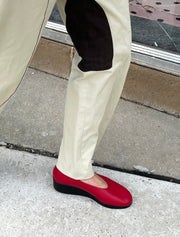 The IO Slipper is an update to our most requested Wedge Slip-on style with improved fit and comfort elements. IO stands for indoor/outdoor as the shoes are comfortable enough to be worn indoors as a lounge slipper while still chic and versatile to be worn out. It features a soft glove upper fit, a custom lightweight and flexible polyurethane sole, and back heel wraparound with a mini pull tab.