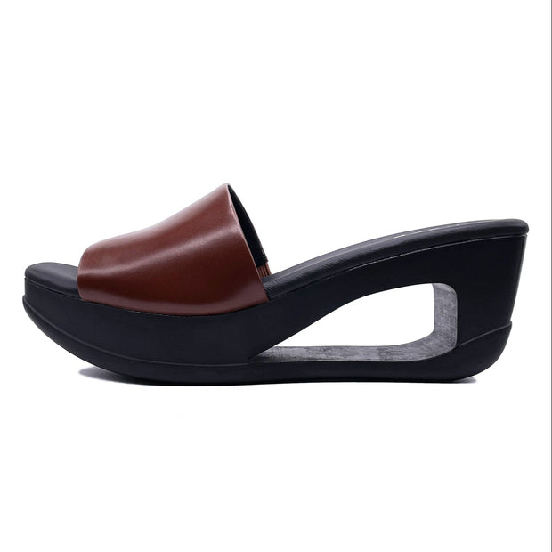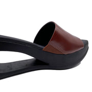 The Limbo Slide is an easy and walkable cut-out wedge sandal with a leather band upper. The band has a small elastic piece for some adjustability.
