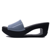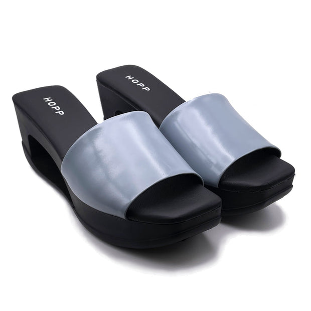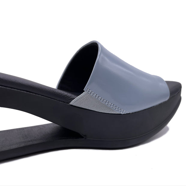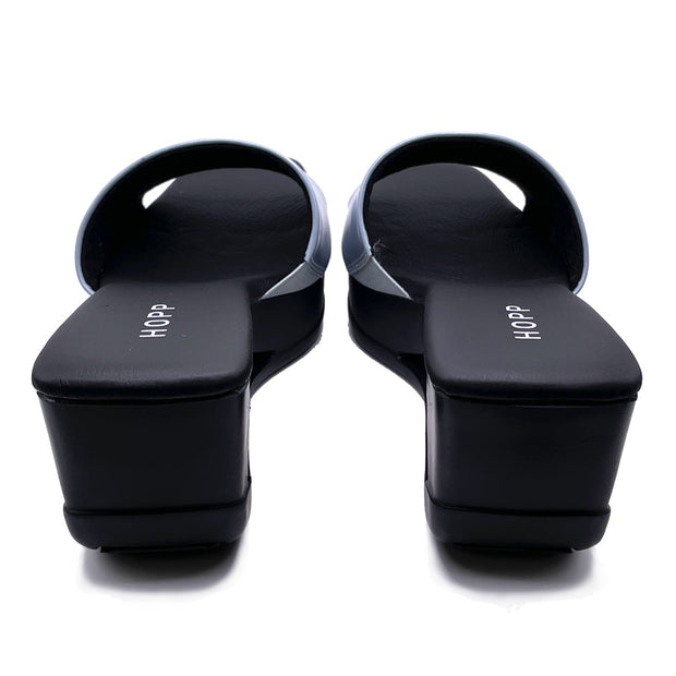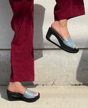 The Limbo Slide is an easy and walkable cut-out wedge sandal with a leather band upper. The band has a small elastic piece for some adjustability.